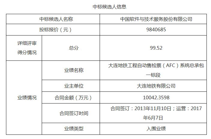 中标候选人:中国软件与技术服务股份有限公司