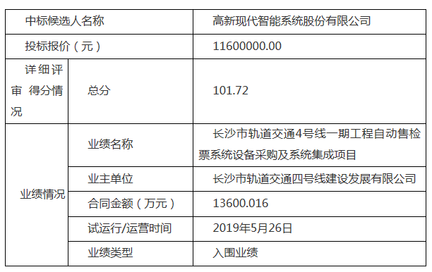 中标候选人:高新现代智能系统股份有限公司