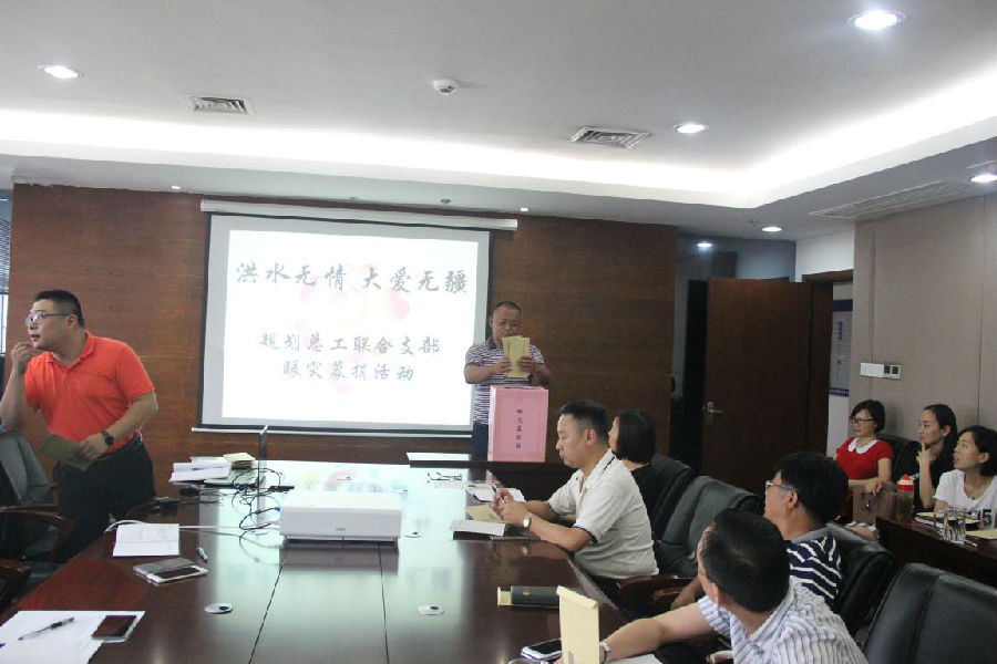 7月14日,规划总工联合支部开展赈灾募捐活动,规划发展部、总工办全体党员、职工以及广州院、中铁二院、中铁四院、中铁上海院等参建勘察设计单位代表参加了活动,共筹得赈灾善款7万余元。