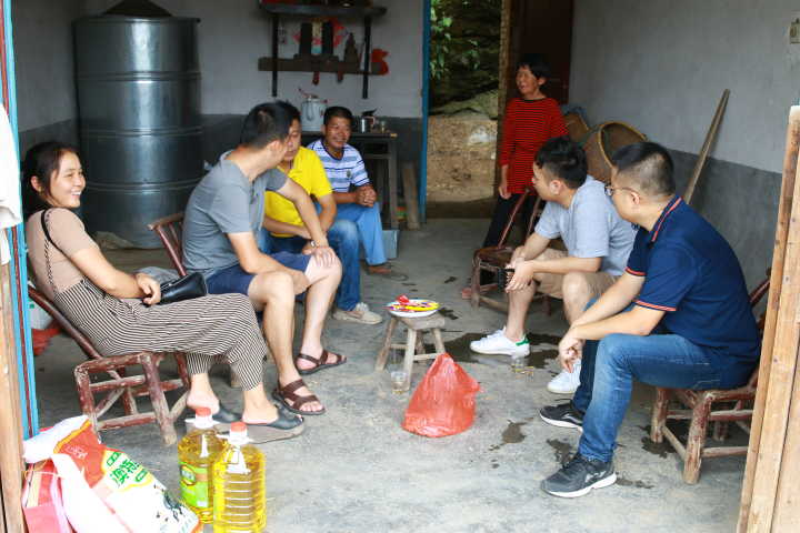随后,帮扶组实地勘察了吴运洪家中周围环境,询问家中粮食收成,了解到吴运洪家中今年种了几百斤花生,但由于交通不便农作物销路不通,正愁销路。大家当即决定收购囤积的花生并积极寻找销路。看到囤积的货物有了销路,生活有了努力的方向,吴运洪不住地感谢大家的关怀,饱经风霜的脸上洋溢出了幸福的笑容,自信满满地表示将来多发展花生种植,争取早日脱贫。