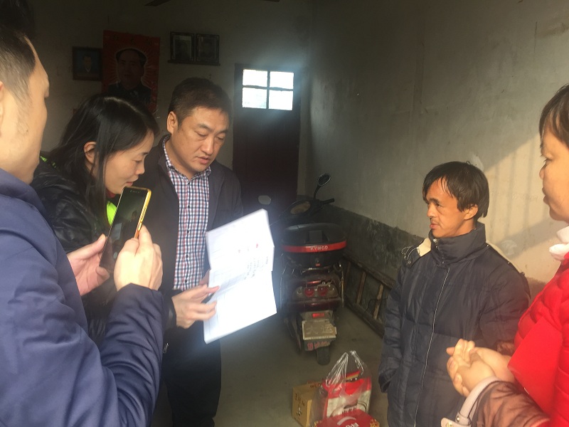 12月4日下午,为切实了解结对帮扶对象的实际生活状况,落实市扶贫办《关于进一步做好贫困户结对帮扶有关工作的紧急通知》的具体要求,征拆事务支部书记刘玉辉一行3人来到长沙市望城区靖港镇杨家山村,看望走访贫困户程雨华一家并送上慰问物资。
