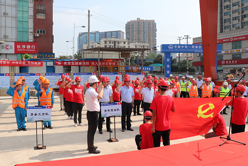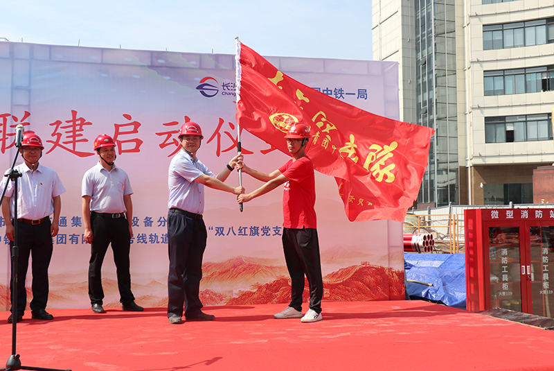 7月1日下午,机电设备分公司联同3号线轨道2标(中铁一局)在四方坪铺轨基地举办了以“高举党旗建地铁、再入长沙立新功”为主题的党建联建启动暨党员突击队誓师大会。机电设备分公司党支部书记以此次党员突击队授旗为契机,希望各联建支部充分发挥“双八红旗党支部”战斗堡垒作用和党员先锋模范作用,全面发扬党员突击队特别能吃苦、特别能战斗的精神,用饱满的热情、昂扬的斗志,携手共建精品地铁,向市委、市政府和市民交出一份满意的答卷。同时,各参建单位共同见证了“双八红旗党支部”揭牌授旗仪式。