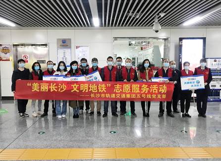 五号线支部党团员到万家丽广场站开展“美丽长沙、文明地铁”学雷锋志愿服务活动。在接受车站的专业培训后,大家手持“请主动配合安检保持1米距离”“文明礼让、先下后上”“请保持1米有序排队”的指示标牌,在购票处、安检口、站台等处热情引导进站乘客有序购票、安检、乘车,积极帮助妇女儿童、老人上下车、进出站,耐心解答乘客提出的各类问题。