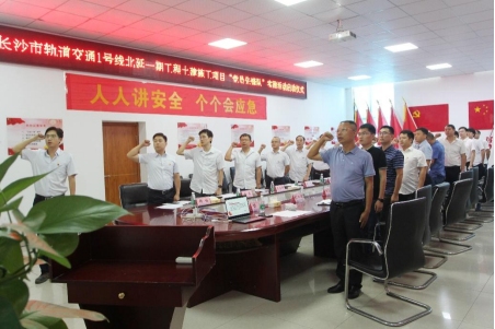 “我志愿加入中国共产党……”在长沙地铁1号线北延一期工程土建施工项目会议室正隆重举行重温入党誓词仪式,全体党员高举右拳面向党旗庄严宣誓,铿锵有力、掷地有声的宣誓表明了全体队员的责任与担当,愿意为长沙地铁事业贡献力量的决心。