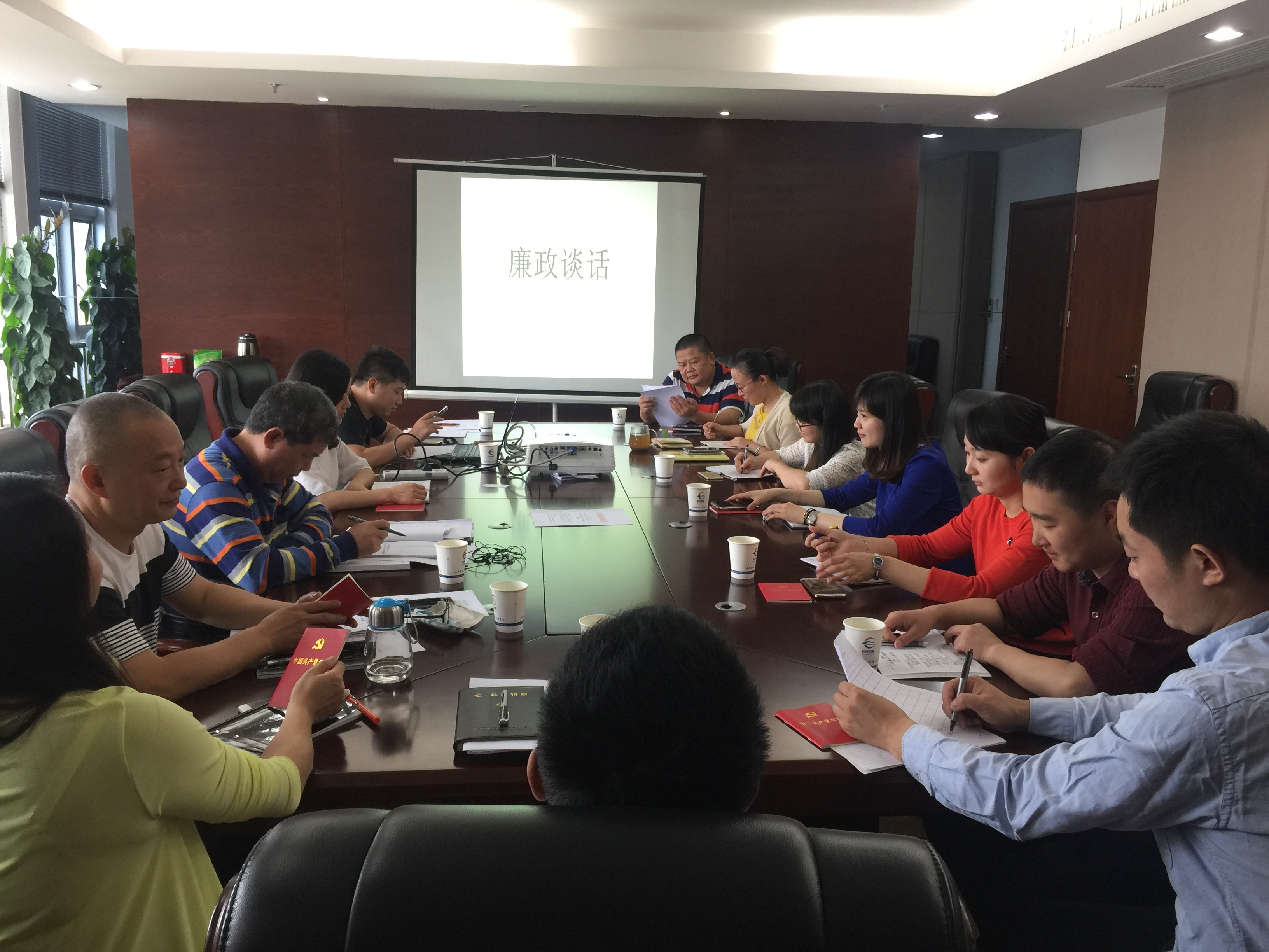 2017年6月15日上午,办公室在24楼会议室召开廉政集体谈话会议,会议由办公室支部书记刘晖主持,参加会议人员有办公室副科以上干部、党员和车辆科全体人员。