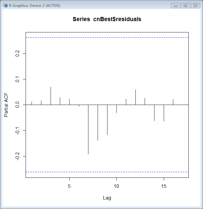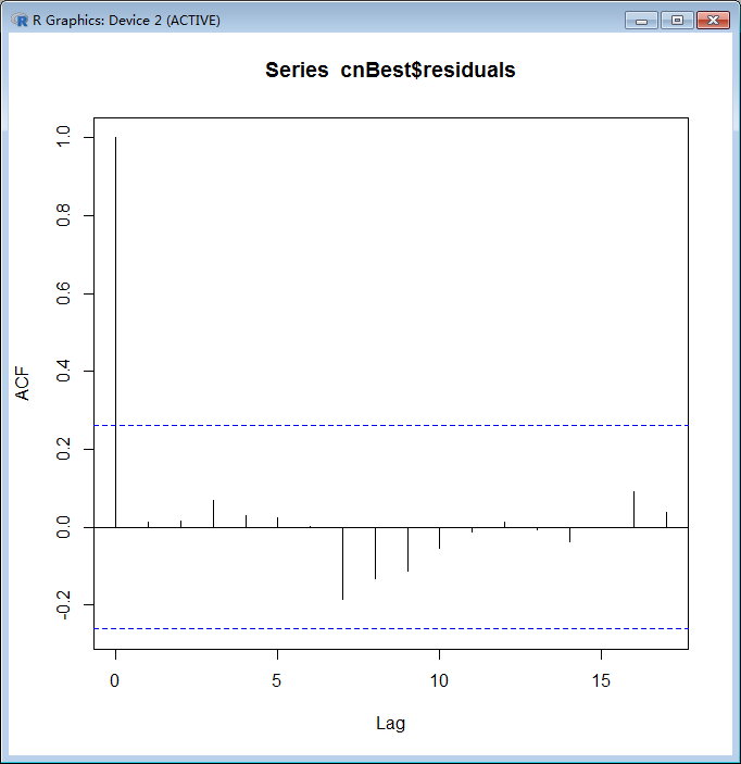 上图为根据auto.arima函数拟合模型后残差的ACF和PACF。