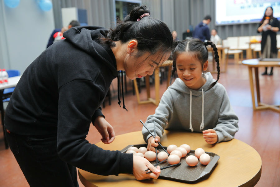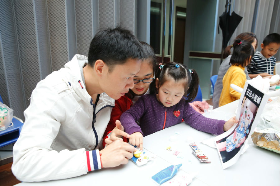 活动中,有大人和小朋友在欢快的音乐中比拼夹鸡蛋,反复的练习,默契的配合,即使再难夹也要与家人共同完成游戏,通过游戏比拼现场两个家庭成功的将“万人瞩目”的磁浮列车模型抱回了家。也有小朋友在家人的协助下,小心翼翼的挤奶油,摆放卡通手机壳制作材料,尽全力做到最好,用心为家人制作手机壳,大人们则静静的享受着与孩子共同完成一幅作品的幸福时光。在互动期间我们有效的打开亲子情感交流通道,拉近了亲子心灵距离,为员工营造了一个幸福美满的家庭氛围。