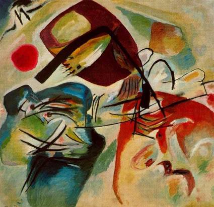抽象艺术作为前意识和无意识交流的语言符号,放弃了对具体内容和情节的表现,突出运用点、线、面、色块和构图等纯粹的绘画语言去表现内心的感觉、情绪、秩序、节奏等抽象内容。从艺术风格上,评论家们又把它们分为热抽象(抒情抽象)和冷抽象(几何抽象)。以康定斯基为代表的热抽象传达了感性、抒情、自由和节奏感,他将声音和颜色联系在一起,期望从内部世界得以窥探人内心的动荡,洞见隐秘的知识。康定斯基的后期作品其色彩和形状都是由思想和情感产生的超感觉振动所决定的,有点像玄学,不能追问其意义,因为它们早已突破了现实的桎梏。