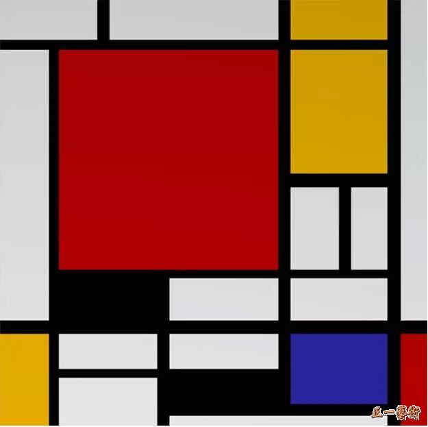 而以蒙德里安为代表的冷抽象,则传达了理性、秩序和平静的语言符号,他的后期作品中甚至放弃使用曲线和复色,只用水平线、垂直线和三原色构图,他认为只有这些元素是最平静、最单纯、最稳定和最理性的,而神奇的是,经过后人分析,这些画面中去掉任何一根线条或是色块,哪怕只是改变某个色块的颜色,整个画面都无法达到完美的平衡,这种看似简单实则复杂又独树一帜的风格,也成为了后来极简主义思想的发源。