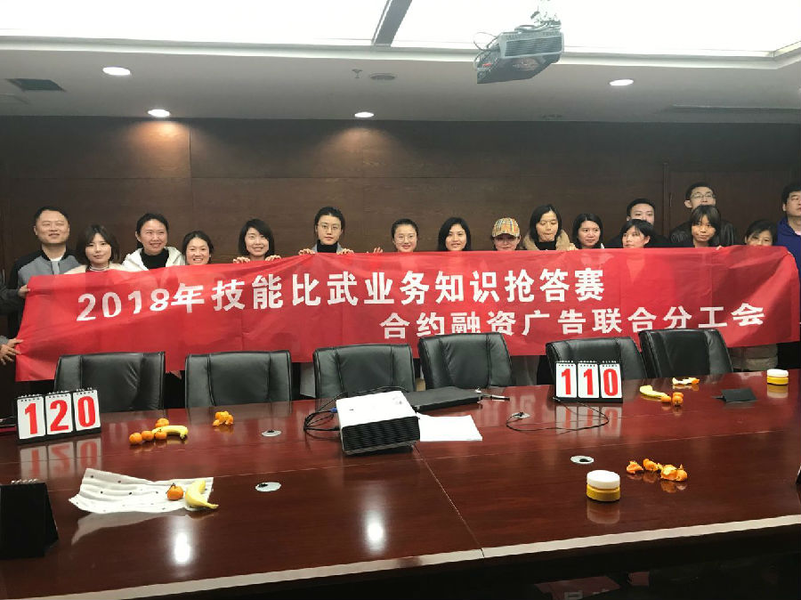 12月20日,合约融资广告联合工会在集团602会议室举行了2018技能比武业务知识抢答决赛,我部门成锦涛、张煜薪、李思琪、刘有为4名选手参加,组成投融资经营管理部代表队。
