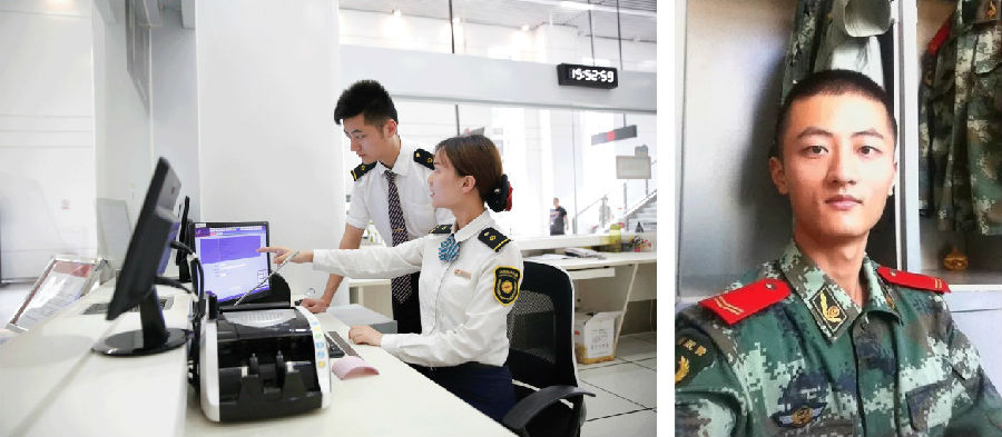 除了这些可爱的人,长沙磁浮快线上还有数名守护着运营安全的退伍军人,他们分别是安全与后勤保障部安保安检管理员邹志恒、客运管理部站务员龚丹帅及阳灿,当然也少不了默默支持军人奋斗的家属-磁浮办公室党群干事李进。