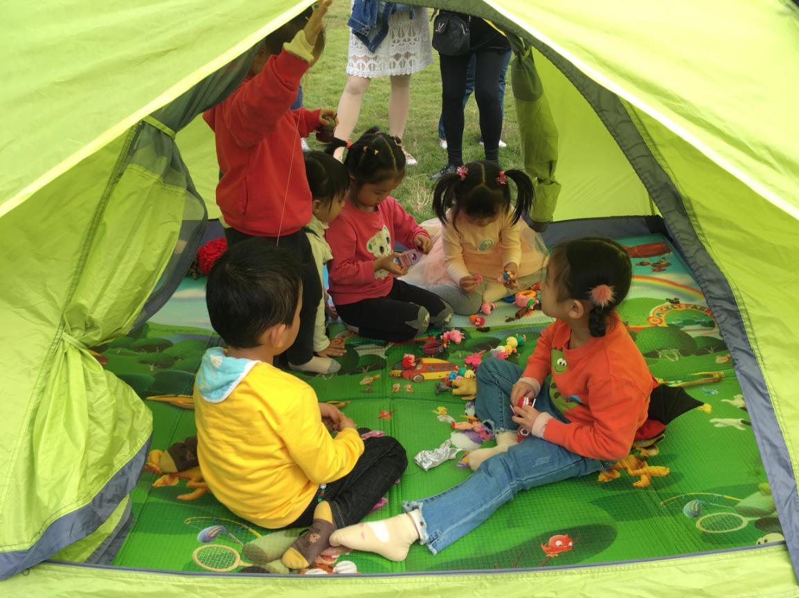 疯跑总是最容易累的,这些喜欢钻桌子,躲雨伞,用被子假装帐篷的宝宝们也需要一个属于自己充满安全感的小世界来休息。贴心的爸爸妈妈们早就有准备,不远处早就搭好了一个黄色的小帐篷。你能想象到孩子们看见帐篷时两眼发光的情景,大人们总算也可以清静一下了,嘿嘿!