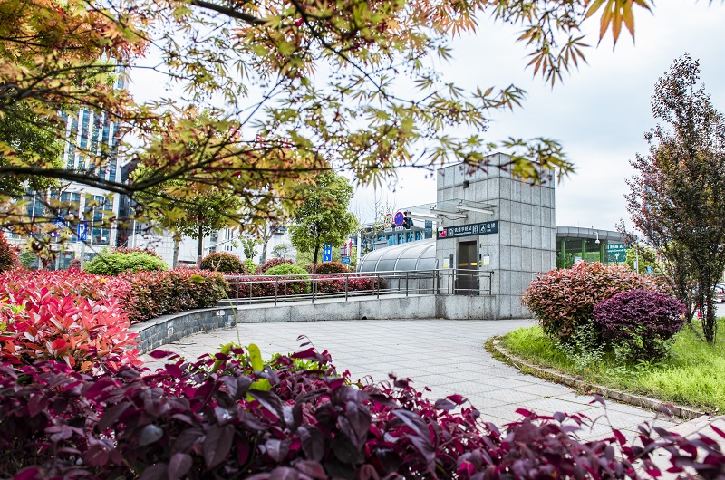 春风徐来,莺飞草长。青草绿叶在春日的暖阳中尽情地摇曳。一丛丛、一簇簇的繁花在地铁口外竞相开放。