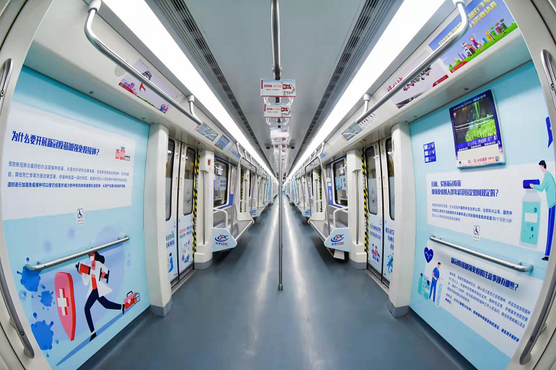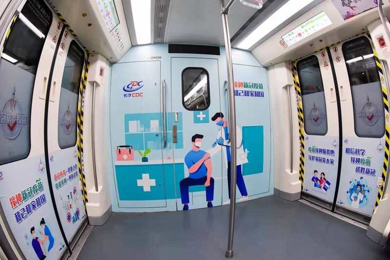 11月25日,长沙地铁2号线以“接种新冠疫苗 利己利家利国”为主题的“新冠疫苗科普号”正式发车,以丰富生动的疫苗知识,为长沙市民带来预防接种科普服务,为建立群体免疫屏障贡献自己的“一臂之力”。