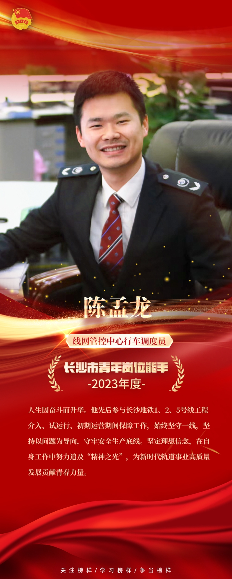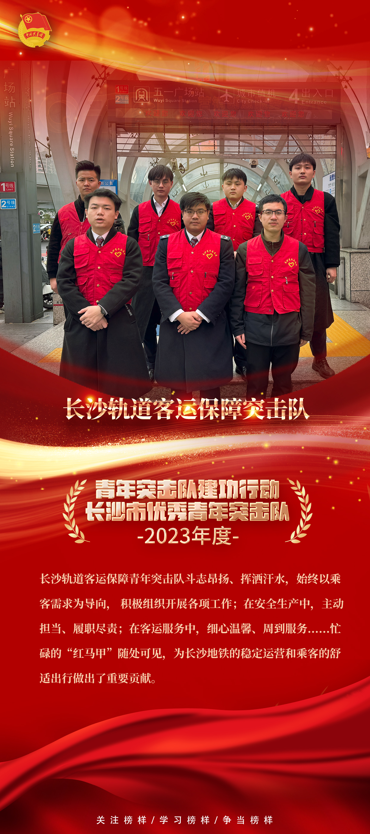 近日,共青团长沙市委发布《关于命名表彰2023年度长沙市青年文明号的决定》《关于长沙市青年突击队建功行动评选结果的通报》《关于命名表彰2023年度长沙市青年岗位能手的决定》,共青团长沙市委、长沙市应急管理局发布《关于2023年度长沙市青年安全生产示范岗活动结果的通报》,长沙市轨道交通运营有限公司车务部土桥站荣获“长沙市青年文明号”称号,长沙轨道客运保障青年突击队荣获“长沙市青年突击队建功行动优秀青年突击队”称号,长沙市轨道交通建设有限责任公司项目三组荣获“长沙市青年安全生产示范岗”,应急安全部谭伟,运营公司汤颖宏、陈孟龙荣获“长沙市青年岗位能手”称号。