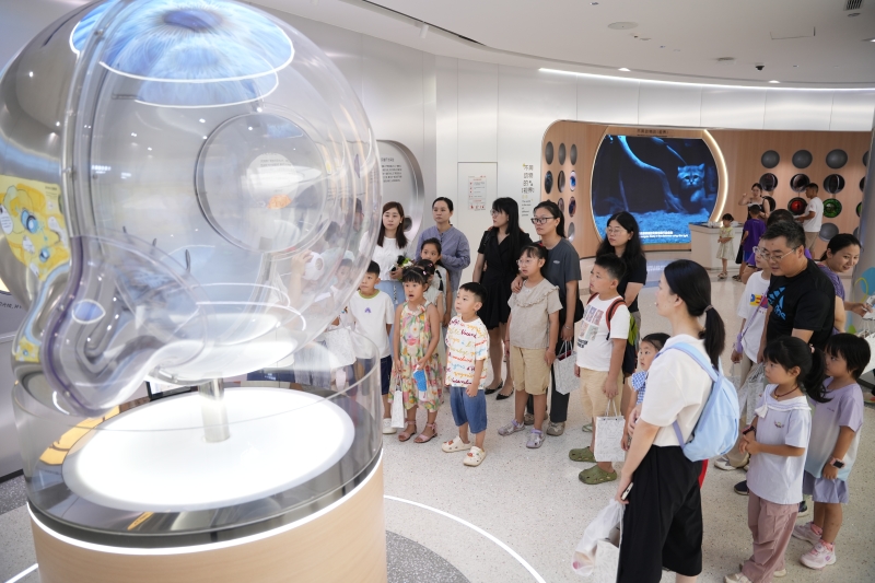 8月29日,第二场“光明未来·爱眼同行”亲子活动在长沙爱尔眼科医院眼健康科普馆顺利开展。活动现场,科普馆辅导员化身“护眼小天使”,带领孩子们开启奇妙的护眼之旅。孩子们戴上“眼球探险家”VR设备,观看“近视防控大作战”动画短片,沉浸式学习了眼球内部结构,巩固了“少看电子屏”“正确坐姿”等护眼知识。在“我是小小验光师”环节,孩子们穿上专业验光装备,有模有样地为小伙伴模拟视力检测操作,亲身体验眼科工作的奥秘;活动在“护眼知识闯关”游戏中收官,孩子们开动小脑筋,现场气氛热烈,在欢乐中强化了护眼知识记忆。