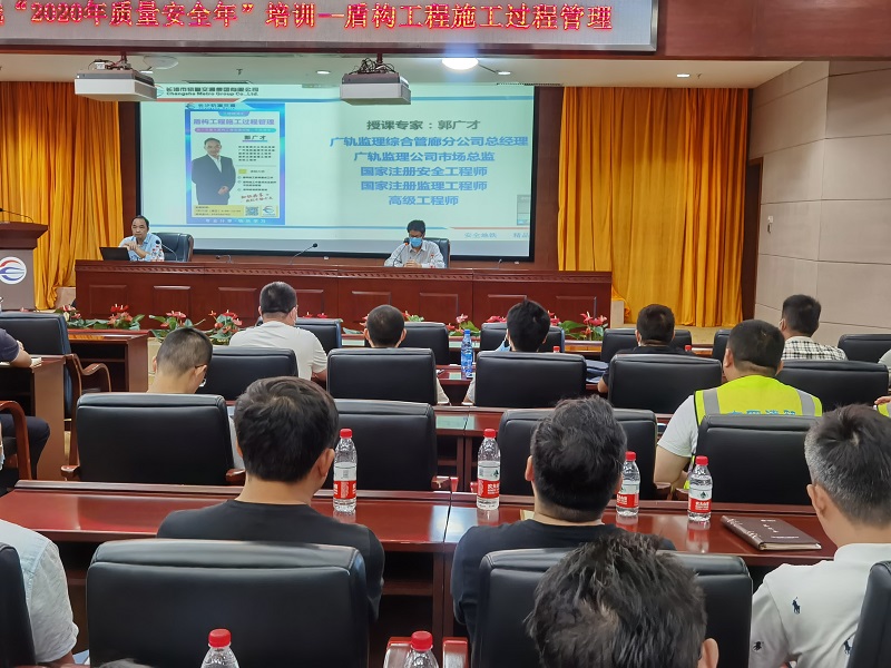 为进一步贯彻落实长沙地铁6号线质量安全管理,全面加强盾构工程施工过程质量安全管理,7月22日,六号线建设公司邀请全国著名盾构专家、国家注册安全工程师、注册监理工程师郭广才主讲盾构施工质量安全培训。长沙地铁6号线各参建项目总工、安全总监、盾构队长、盾构司机、班组长等参加培训。