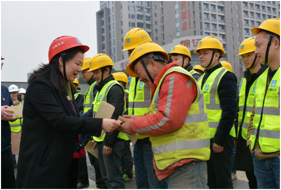 钟娜一行深入施工现场,问冷暖、听心声,对春节前夕依然坚守在施工一线、默默为地铁建设奉献的农民工兄弟表示感谢,并送上新春祝福。在询问了大家的生活状况,悉心听取了大家的心声后,她表示:“青年兴则国家兴,青年强则国家强,感谢长沙地铁建设有你们奉献青春和默默坚守,美好城市建设离不开你们的付出”。钟娜将新春慰问金一一送到了农民工手中,大家都笑在脸上,甜在心里,一份温暖在大家心中播种、传递。