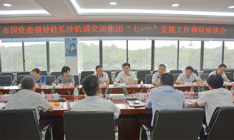 6月22日,市国资委党委书记、主任王雄文一行7人赴长沙市轨道交通集团开展“七一”党建工作调研座谈,会议在6号线二标工程指挥部会议室召开。