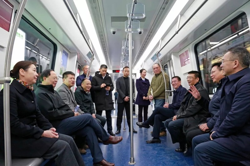 张剑飞一行乘坐4号线列车从平阳路站前往树木岭站(城际铁路换乘站)、湖南师大站等实地察看了机电设备设施、站内装饰装修及互联网售检票系统情况,现场听取长沙轨道交通总体建设运营情况的汇报,了解4号线车辆段的建设进度和周边建设规划情况。对于长沙地铁率先应用由本省企业自主研发的国内首套永磁牵引系统且运用情况良好、节能效果显著,下一步5号线将成为国内第一个全部列车采用永磁牵引系统的线路,给予了高度肯定。他要求,长沙轨道要坚持精心组织,精细施工,精品要求,务必确保4号线如期实现载客试运营。