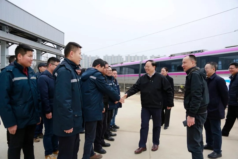 在4号线星城车辆段,张剑飞亲切慰问了长沙轨道一线职工,对大家在节假日坚守岗位,为广大市民早日乘坐4号线所付出的辛勤劳动和奉献精神表示由衷感谢。