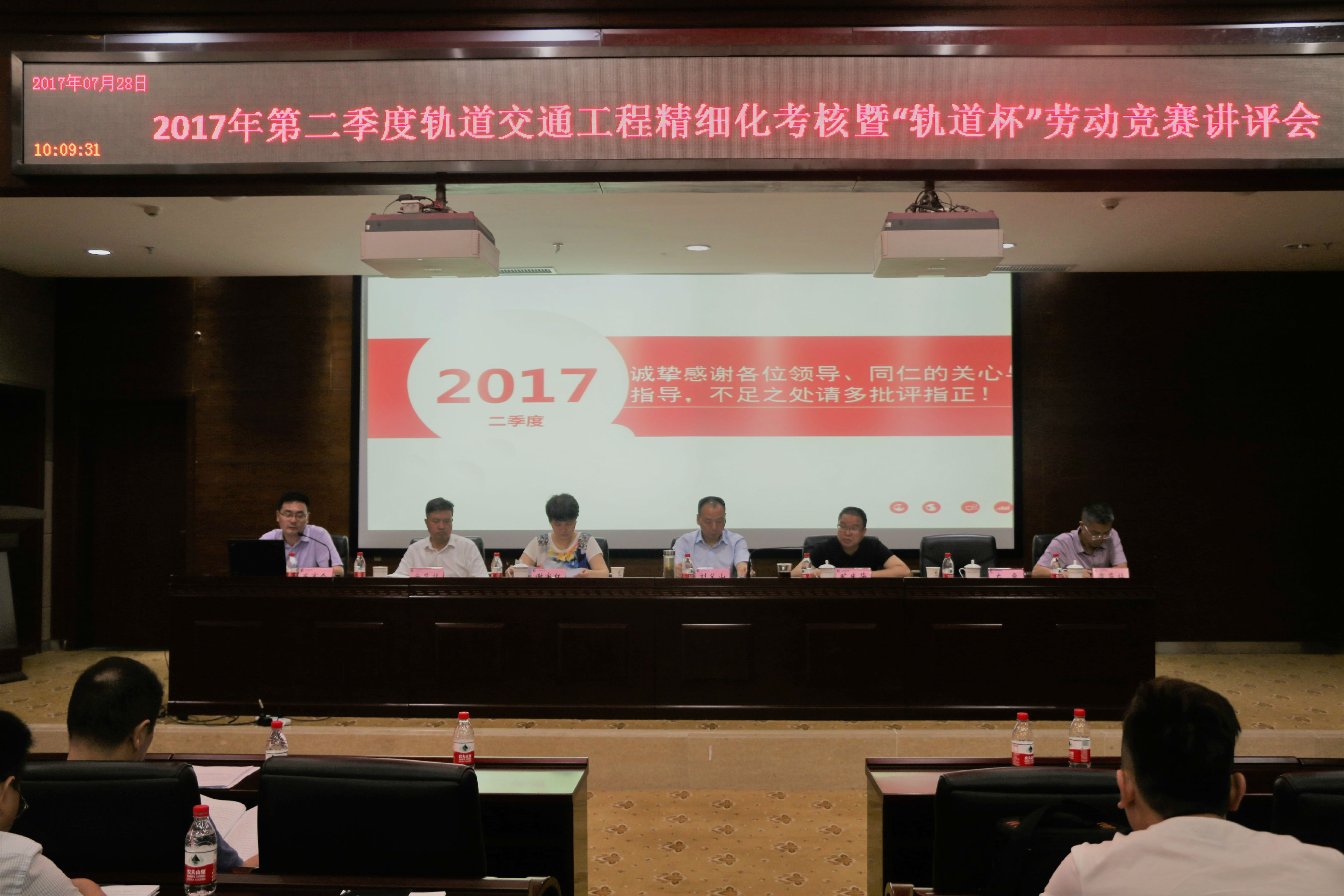7月28日上午,我司2017年第二季度精细化考核暨“轨道杯”劳动竞赛讲评会在集团26楼会议室隆重举行,公司党委书记、董事长刘义山,党委委员、工会主席谢宇红,董事长助理左卓,市质监站、市安监站等领导出席会议,会议由公司常务副总经理旷庆华主持。集团各部门、子(分)公司,施工、监理等参建单位负责人共200余人参加了会议。