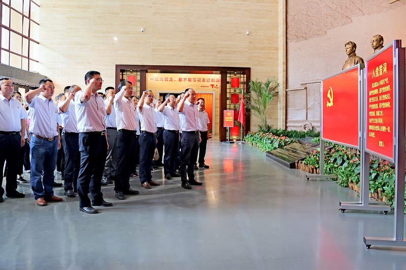 在中国共产党长沙历史馆内,面对党旗,刘义山带领大家一起重温入党誓词,誓言铮铮、铿锵有力,让现场所有人都深受感染,激情满怀。