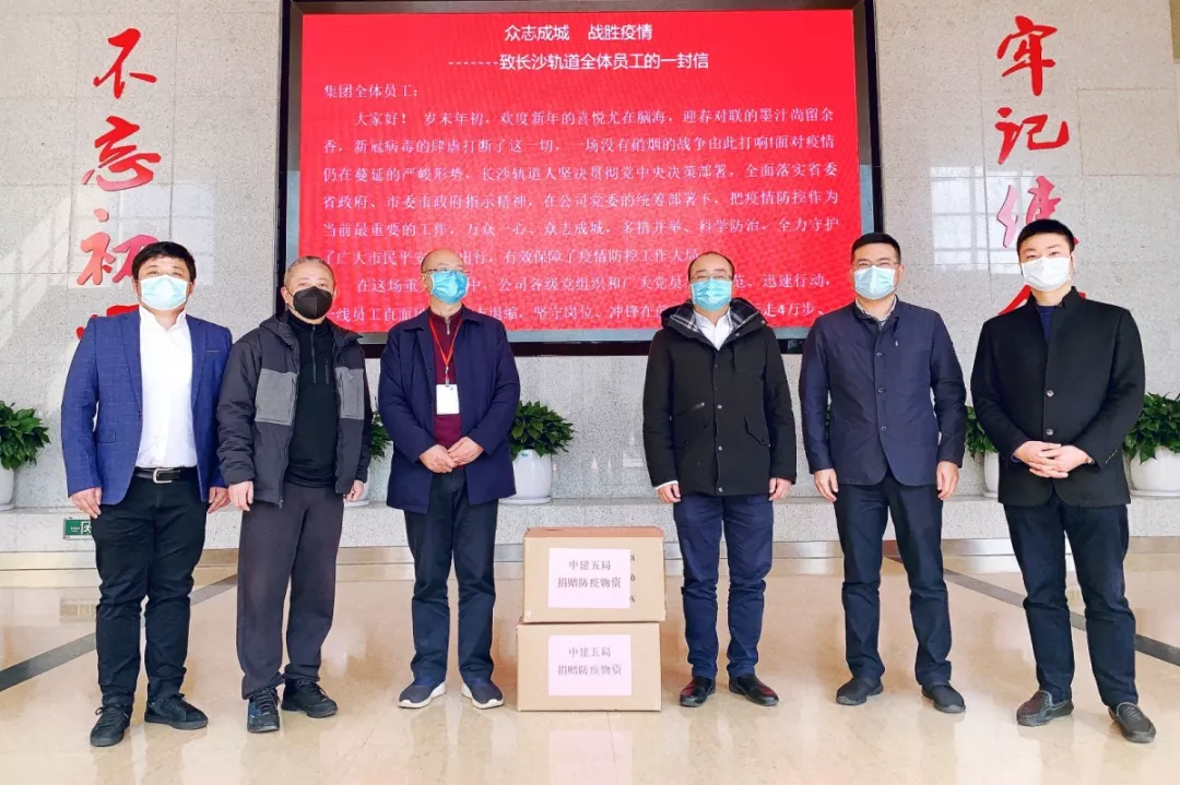 同日,地铁2号线黄兴车辆段上盖物业项目承建方中建五局总承包公司向长沙轨道集团捐赠一次性医用外科口罩5000只,该批防疫物资将全部用于支援一线人员使用。