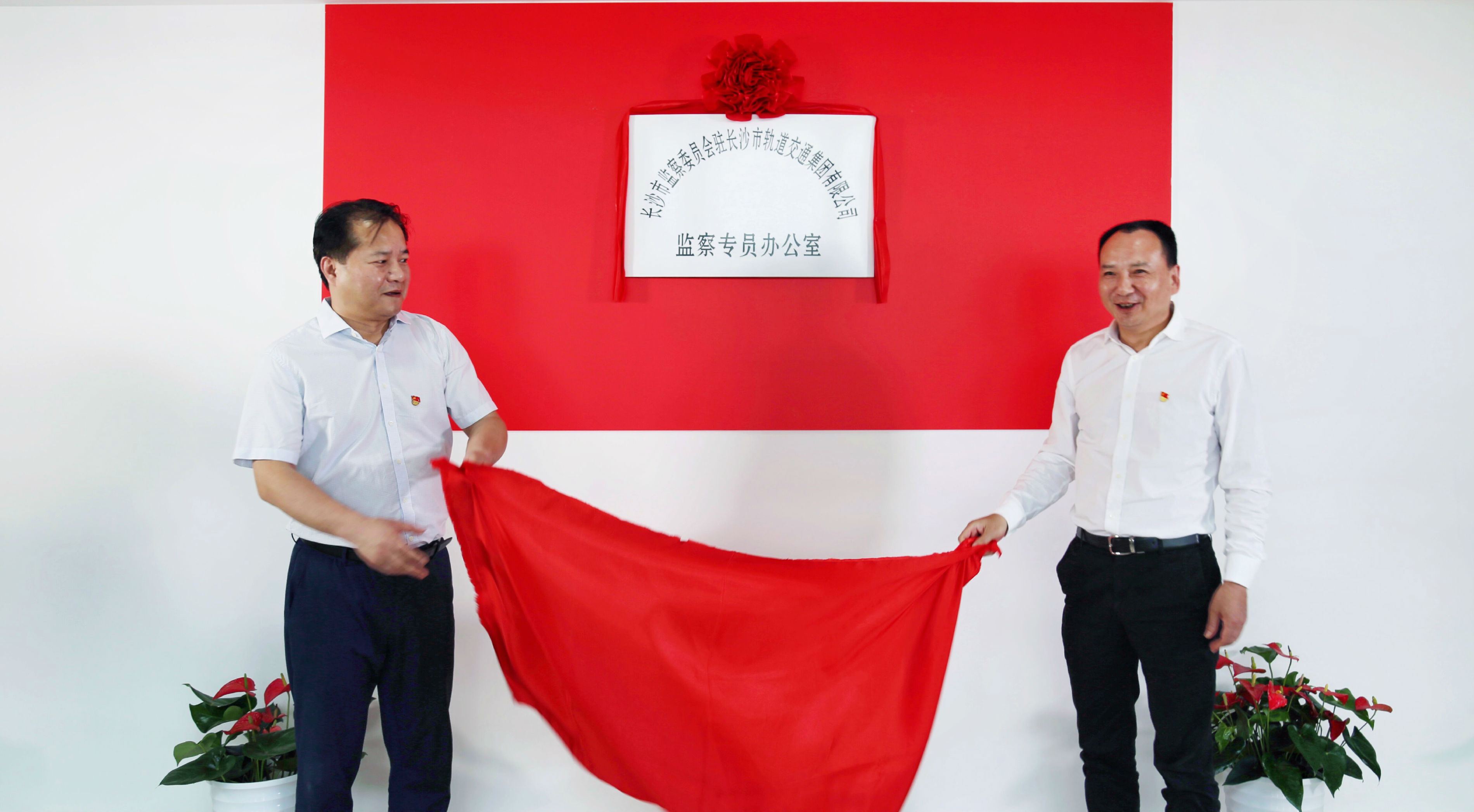 2020年5月7日长沙市轨道交通集团有限公司举行“长沙市监察委员会驻长沙市轨道交通集团有限公司监察专员办公室”挂牌仪式。长沙市纪委市监委第三纪检监察室副主任李永辉,市轨道集团党委书记、董事长刘义山共同为“监察专员办公室”挂牌,市轨道集团党委副书记、总经理周晓明主持挂牌仪式。集团公司在家班子成员、全体纪委委员,集团公司、运营公司和磁浮公司监察审计部全体同志参加了挂牌仪式。