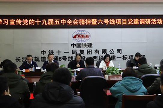 12月23日下午,公司党委副书记、监事会主席喻勇兵到6号线联合体项目部开展党建调研活动,邀请长沙市委党校政法部教研部主任、副教授余敏宣讲了党的十九届五中全会精神。党群工作部、6号线建设公司负责人陪同调研,6号线联合体项目部全体员工以及所属一、二、三工区领导班子成员、全体党员及参建员工代表共50余人参加了活动。