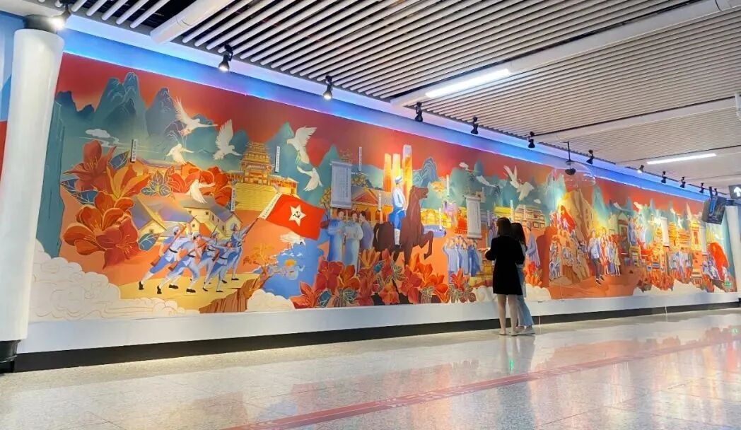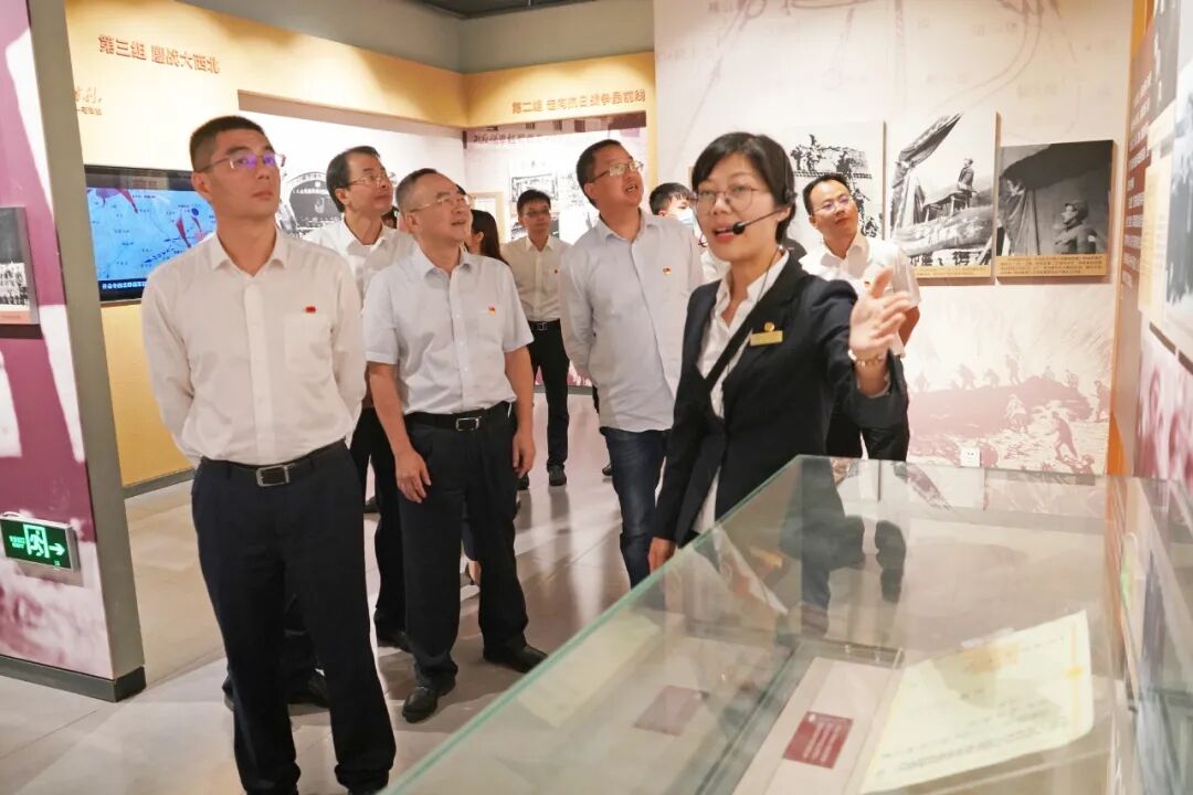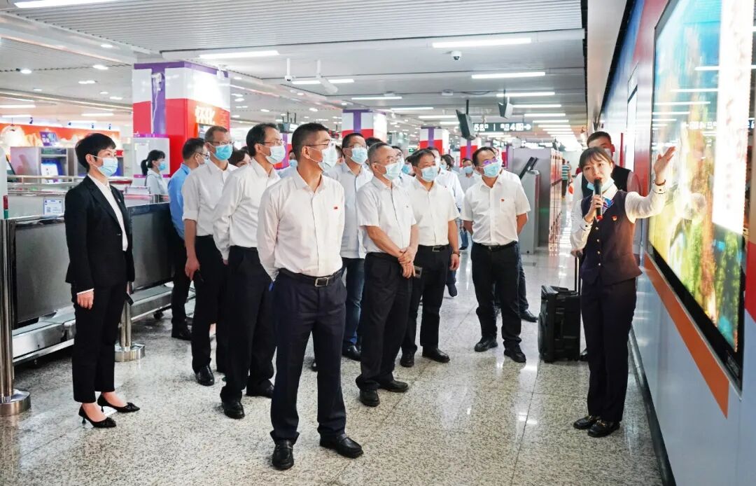公司党委理论学习中心组一行首先学习参观了党史学习教育主题站。该站设在地铁1、4号线换乘黄土岭站,长沙轨道充分利用地铁站厅空间载体,以党的百年奋斗历程的时间轴为脉络,以党的重要历史时期发生在湖南的标志性事件、具有深远影响的代表性人物为线路节点,以生动丰富、特色鲜明的内容进行展示。该主题站每天吸引众多乘客参观学习,还有不少市民慕名主动前来观展,并有多家单位来此开展党史学习教育活动,现已成为长沙党史学习教育新的名片。