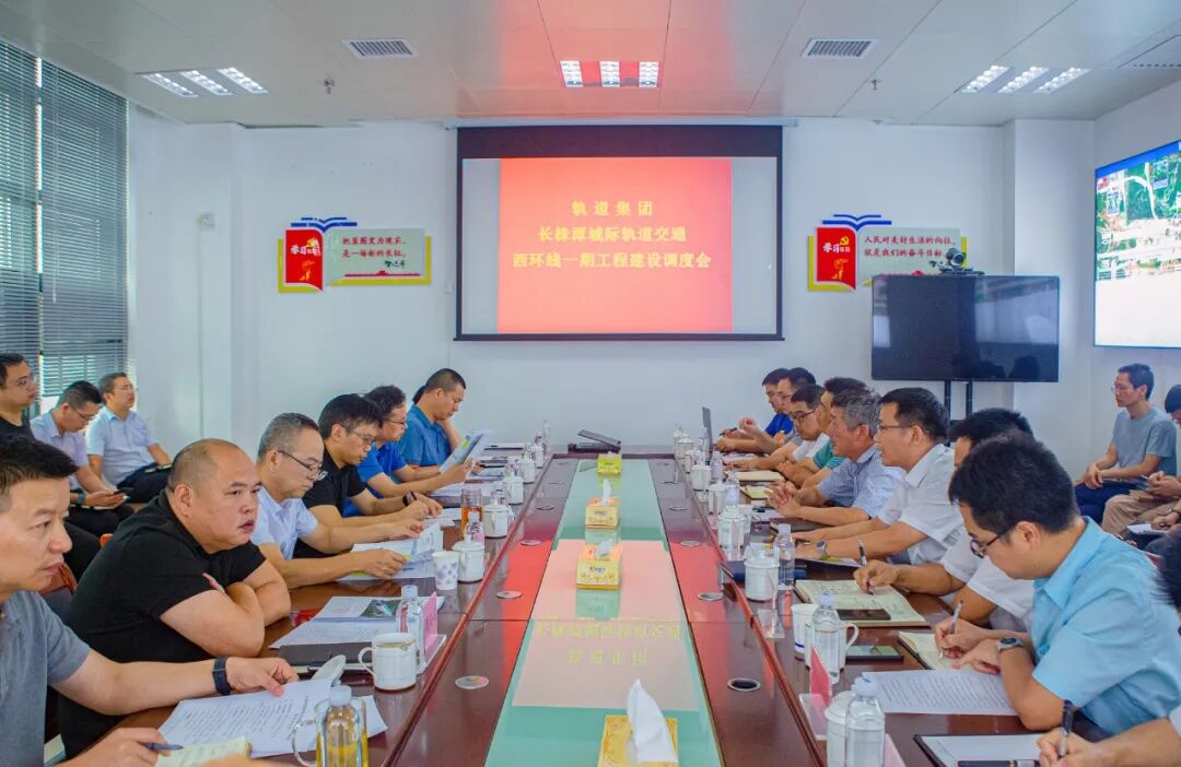 为加快推进长株潭城际轨道交通西环线一期工程建设,7月22日,公司党委副书记、总经理周晓明,党委委员、纪委书记尹双红一行调度西环线一期工程建设,疏通建设堵点难点,部署下阶段工作任务,确保建设又好又快顺利推进,早日释放融城效应。党群工作部、西环线公司、建管征拆中心、技术管理中心负责人及各参建单位代表参加会议。