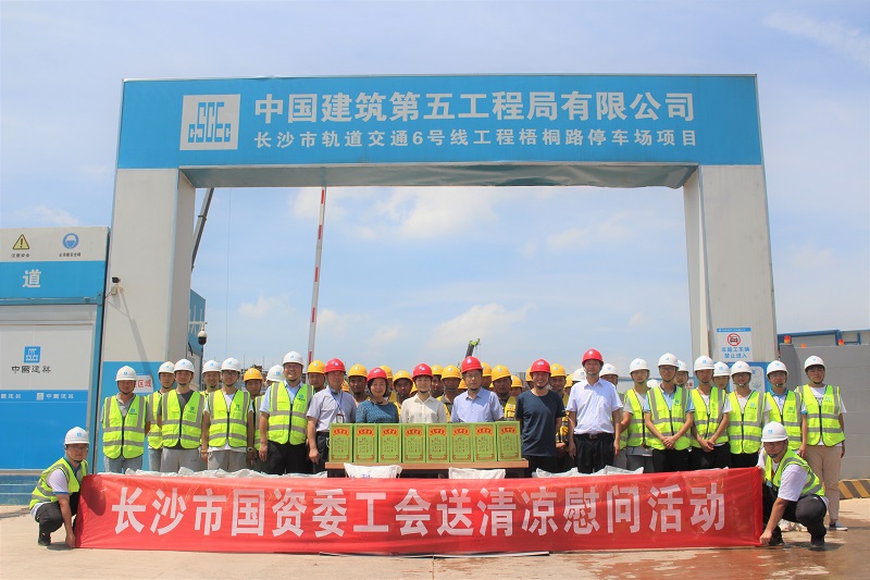 7月22日,长沙市国资委党委委员、工会工委主任、机关党委书记钱军一行来到长沙地铁6号线梧桐路停车场,深入地铁施工现场看望慰问坚守高温作业一线的地铁建设职工。长沙市国资委离退处处长夏露,公司党委委员、工会主席谢宇红,公司工会办公室、六号线建设公司及参建单位相关代表参加慰问。
