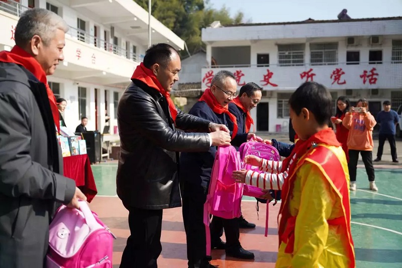 周晓明一行还来到双藕村民和小学,为全校师生送去学习用品和教辅书籍,并殷切地勉励孩子们要好好学习、自信自强,努力争取进步,与全校老师一同努力,做新时代共产主义接班人。