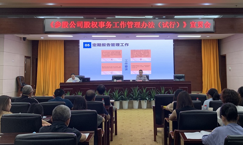 为强化参股公司管理,保障国有资本权益,健全公司内控体系,规范股权管理行为,进一步完善外派人员在参股公司股权事务管理工作标准和流程,6月17日上午,公司在26楼会议室召开了《参股公司股权事务工作管理办法(试行)》(以下简称《办法》)宣贯会议。公司党委委员、工会主席谢宇红,党委委员、副总经理左卓出席会议并作发言讲话,公司相关部门、子分公司及下属参股公司所有外派人员参加会议。