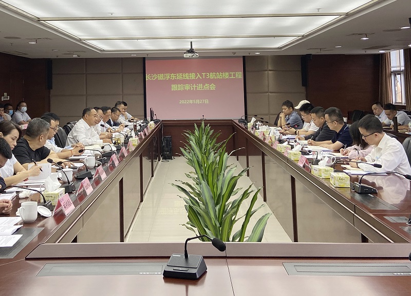 5月27日上午,省审计厅在公司召开长沙磁浮东延线接入T3航站楼工程跟踪审计进点会。省审计厅重大项目审计处处长付海兵,副处长陈昕,公司党委书记、董事长罗国强,党委委员、副总经理蒲富华,党委委员、纪委书记尹双红,总经理助理钟可出席会议,审计组成员、公司相关部门及参建施工、监理、设计等单位负责人参加会议。罗国强代表公司作表态发言,一是提高政治站位,统一思想,从讲政治的高度充分认识此次审计工作的重要性和严肃性。二是全力配合工作,如期如质提供资料,做好后勤保障和衔接沟通。三是坚持边查边改,对发现的问题立行立改,补齐工作短板,切实改进工作,提升工作能力。
