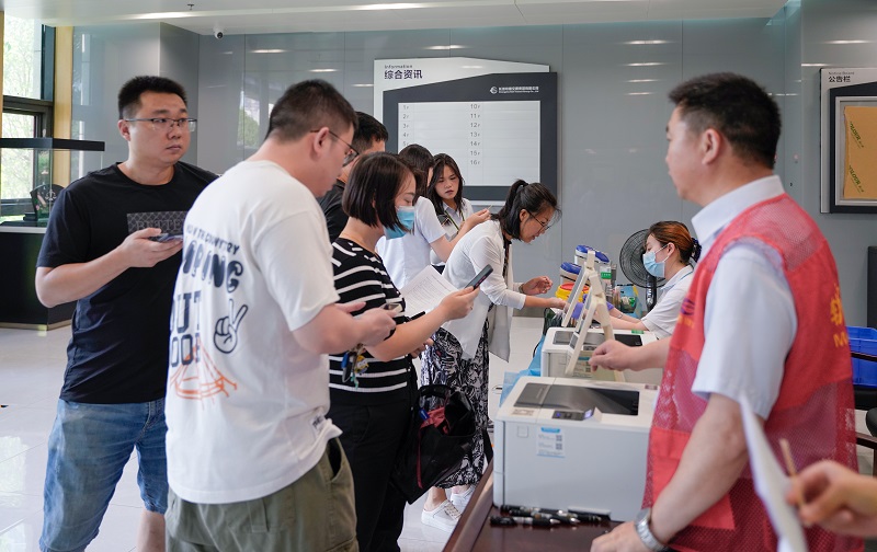 6月28日一早,公司第二控制中心大楼一楼大厅排起了长龙,80多名党团青年、员工群众积极响应公司号召,志愿参与到献血活动中来。大家积极配合长沙市血液中心的医护人员和现场工会办公室的工作人员,从登记信息、测量血压,到抽血化验、采集血液,活动现场井然有序。大家伸出手、传递爱,用自己的实际行动践行社会主义核心价值观,向党的102岁生日献礼。