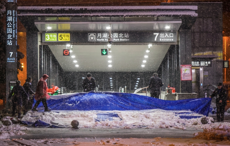 从21日晚到今早,全线各车站工作人员的忙碌一直没停,出入口铺洒工业盐,覆盖雨布,不间断巡视及清扫……凌晨5点,彻夜未眠的他们,又开始撤掉雨布、清扫出入口积雪,在出入口及高架站连廊铺设防滑垫,并安排专人值守各出入口,做好车站范围内的除冰扫雪、积水清除工作,确保客服质量和乘客出行安全。