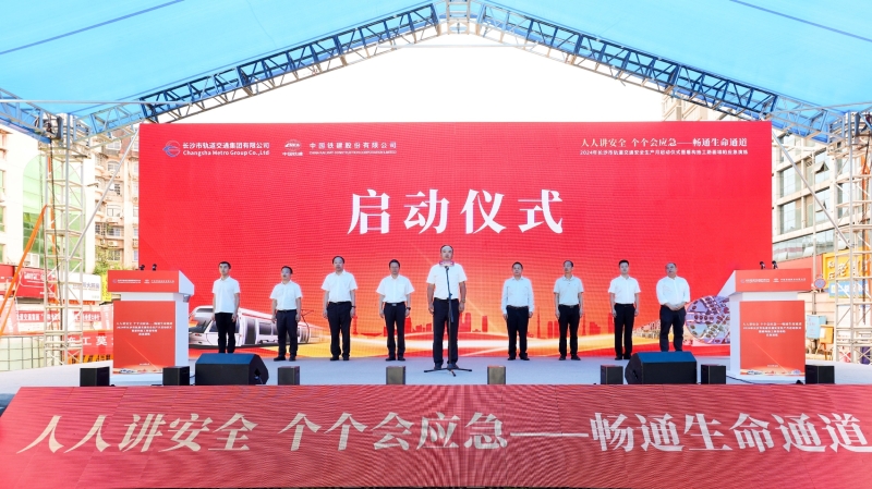 公司党委书记、董事长罗国强宣布“安全生产月”活动正式启动。公司党委委员、副总经理蒲富华对长沙轨道2024年安全生产月活动作部署,中铁十一局党委副书记、总经理魏加志为活动致辞,长沙地铁7号线土建三标项目负责人作为参建单位代表进行表态发言。公司党委副书记、总经理吴海东主持启动仪式。