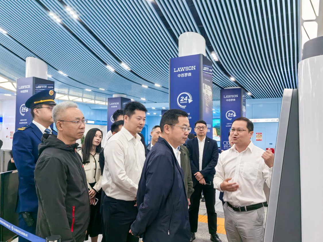 在6号线黄花机场T1T2站,吴海东一行参观了一体化车控室、智慧安检、智能客服中心、3D 视觉通行闸机、站台门电子信息屏、智慧地铁车站管控平台中全景监控、行车与客流监测、视频巡检、视频智能分析、智能开关站、晚间助手、智能运维、AI节能、应急预案等场景的功能应用情况。随后在6号线黄梨路车辆段维修调度中心听取了6号线关于智慧地铁中心管控平台线路行车组织、客流监测和智能运维系统的应用情况介绍。