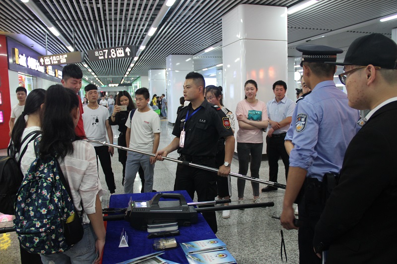 本次巡展站厅分为展览区和示范区,通过实物展示、图文展板、现场解说、乘客互动等多形式、全方面地向乘客展示了地铁安检相关政策法规、工作现状、及拒绝接受安检可能产生的安全隐患等内容。