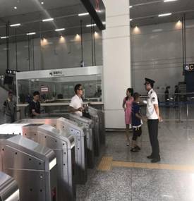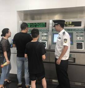 票务稽查小队在车站内蹲点执勤,进行票务稽查,为乘客提供进出站引导及购票帮助。