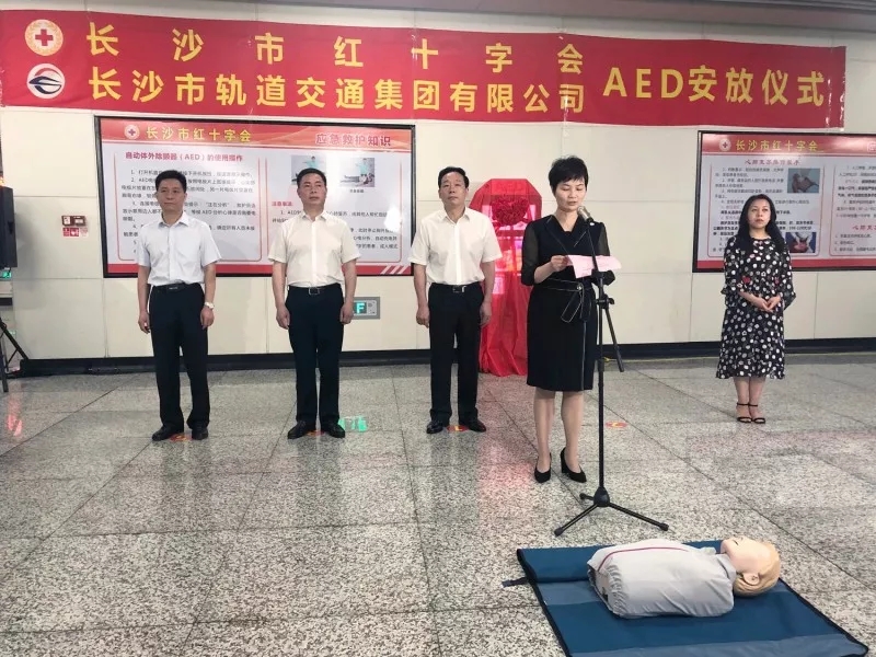 作为广大市民朋友信赖的出行伙伴,为乘客提供全方位的安全出行保障始终是长沙地铁工作目标。为进一步健全医疗急救体系、提升应急救援能力,尽可能帮助突发紧急状况的地铁乘客得到及时有效处置,5月9日上午,长沙地铁与市红十字会联手在五一广场站举行了“红十字博爱周”主题系列宣传活动暨AED(自动体外除颤器)安放仪式。这是长沙地铁今年以来,继联合中南大学湘雅护理学院开展2000余名站务人员急救知识培训后的又一重大安全保障举措。
