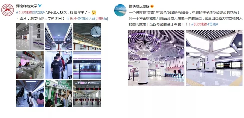 湖南大学乘客留言:“南校北校互通,宿舍校区互通,乘一列紫色快车,赏一圈满天繁星,自此,我湖拥有了一趟名为地铁四号线的‘校车’啦!”