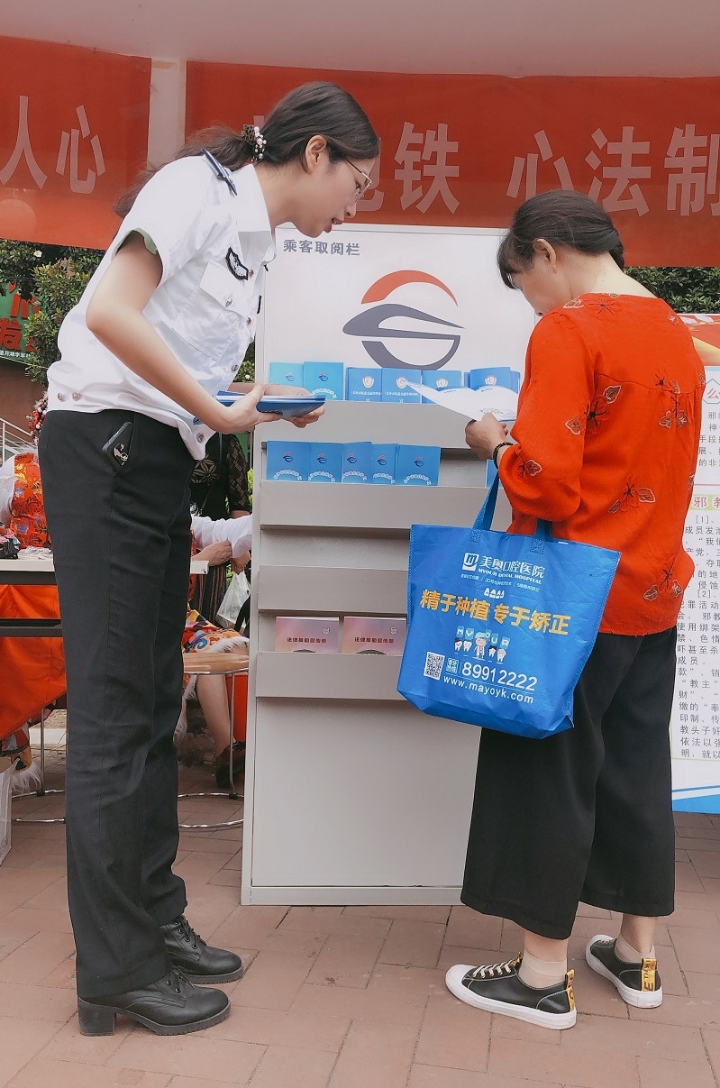 期间,公司执法宣传人员通过悬挂宣传横幅、摆放宣传展板、发放宣传手册、现场咨询解答等方式向现场群众宣传《长沙市轨道交通管理条例》,耐心细致地解答群众提出的有关乘坐地铁的问题,共计发放宣传资料200余册,得到了主办单位以及现场群众的一致好评,起到了良好的宣传效果。