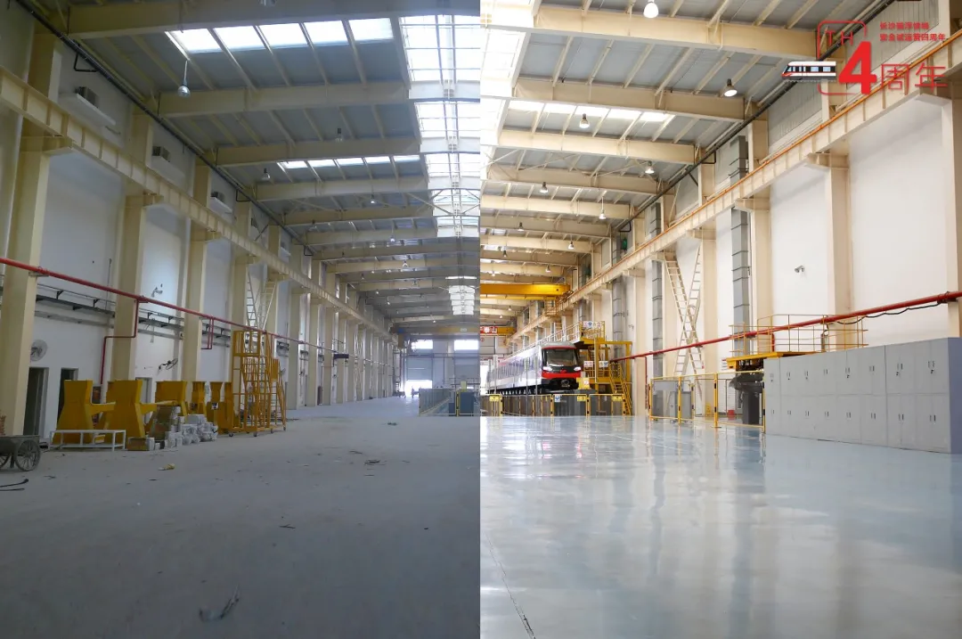 现在(右):磁浮列车回库检修
