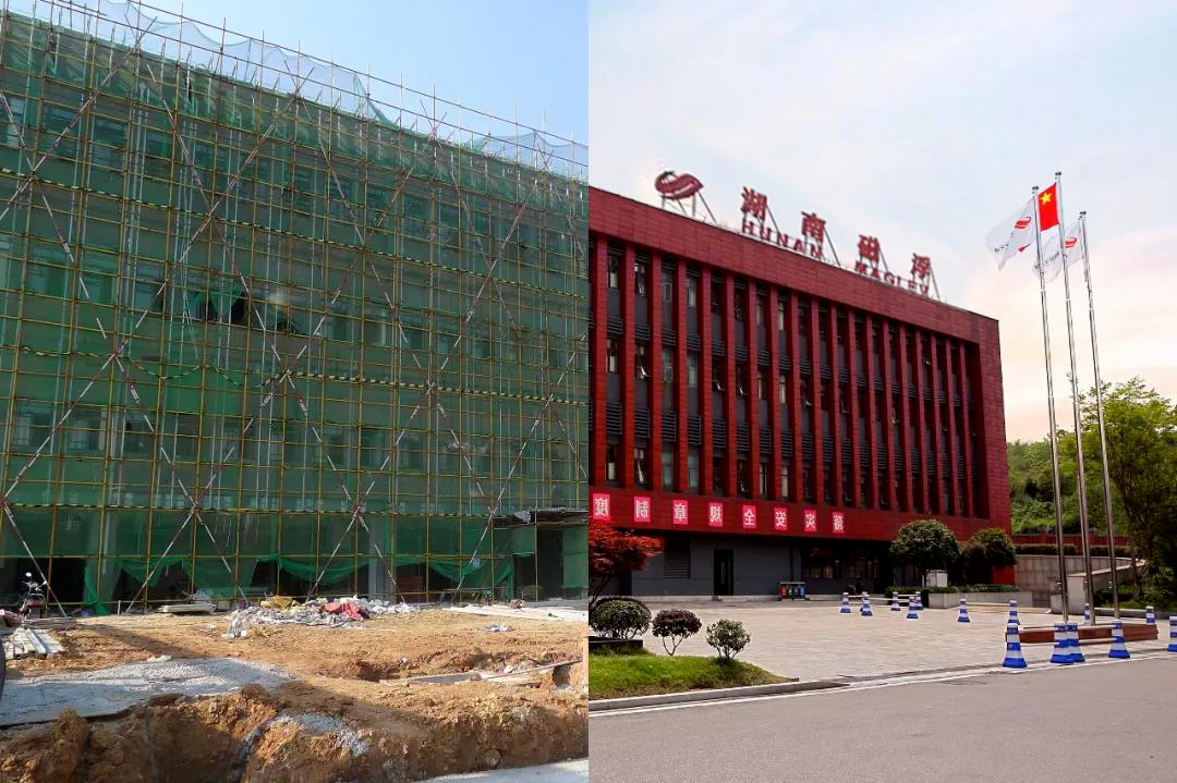 当年(左):外墙装饰施工