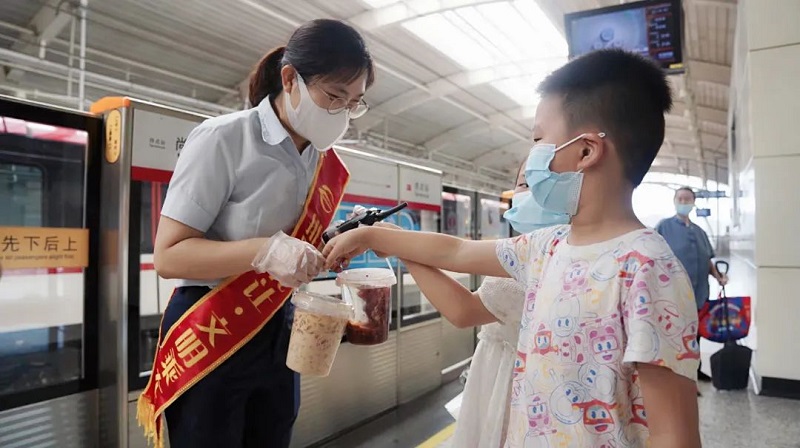 自夏季以来,长沙持续高温天气,给轨道交通运营安全生产工作带来相当大的挑战。为保障员工的安全和健康,在确保运营安全的同时,长沙地铁采取调整部分作业计划、开展“送清凉”系列活动等举措关爱一线员工。8月19日上午,长沙地铁在黄兴车辆段及各作业现场开展“清凉一夏,温暖人心”员工子弟送清凉活动,组织近50名员工子弟现场制作清凉饮品,并亲自送至坚守一线的父母及叔叔阿姨手中。