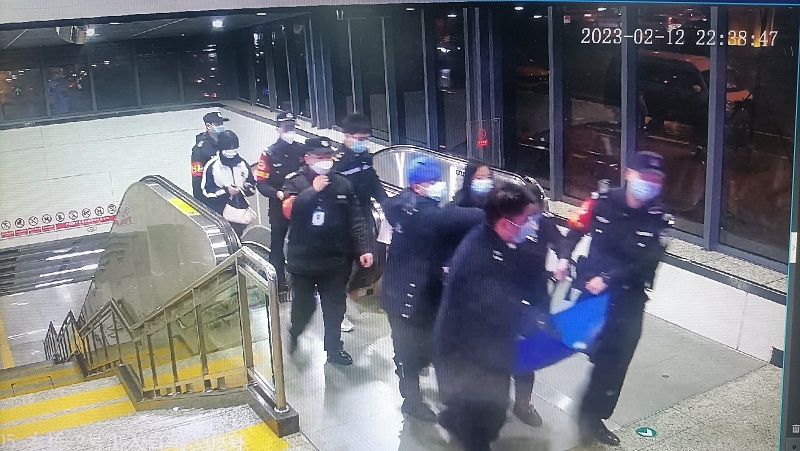 “车控室!下行有人抽搐晕倒,请速来救援!”2月12日晚22:22,5号线木桥站站台岗邓凌霄通过对讲机向车控室发出急呼。值班站长张琴闻讯后,拿上医药箱立刻赶往现场。一位年轻女乘客面色惨白、目光呆滞躺卧在地,并伴有抽搐,女乘客同伴见状吓得不知所措。张琴上前轻抚乘客额头,尝试与其交流,但女乘客已不能正常表达。危急时刻,张琴立刻拨打120,并通知车控室利用广播寻找懂医务的乘客。在此期间,张琴凭借日常培训中掌握的医疗知识与护理经验,从容照护着乘客。“你好,可以听到我说话吗?听到了请给我回应”,“不要怕,120马上就到了”,张琴在乘客耳边不断呼喊、安慰着。22:30,乘客在一句句耐心的安抚声中慢慢恢复意识,对工作人员点头示意。22:37,救护车赶到现场,车站派出安保人员陪同女乘客前往医院。
