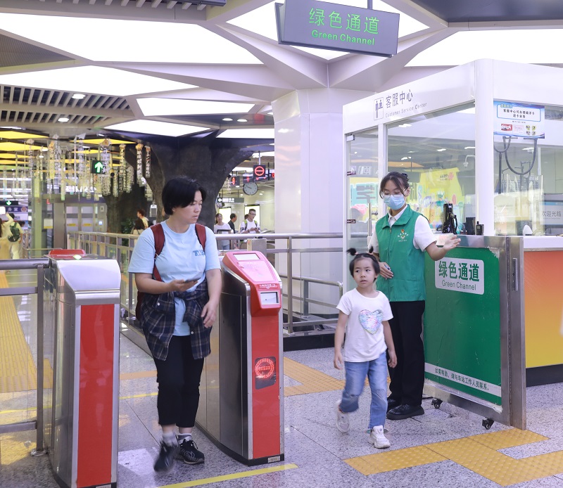 为确保广大乘客暑期安全、有序出行,长沙地铁实时监测线网客流,灵活调整行车组织,除延长高峰时段、压缩行车间隔外,还根据客流情况及时加开上线列车。针对与高铁站、客运站等交通枢纽接驳的站点,优化进出动线,进一步提升换乘效率;对五一广场、橘子洲、万家丽广场等热门商圈、景点车站,加强关键点位盯控;组织员工青年突击队于高峰时段支援现场,强化客流引导,为乘客提供线路咨询、购票指引和安全乘车提醒等服务。